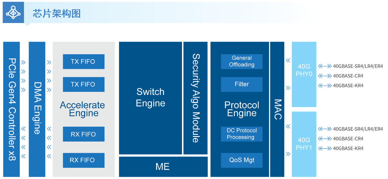 网迅wx5040 40g以太网络控制器芯片,具有业内同工作状态下超低的功耗表